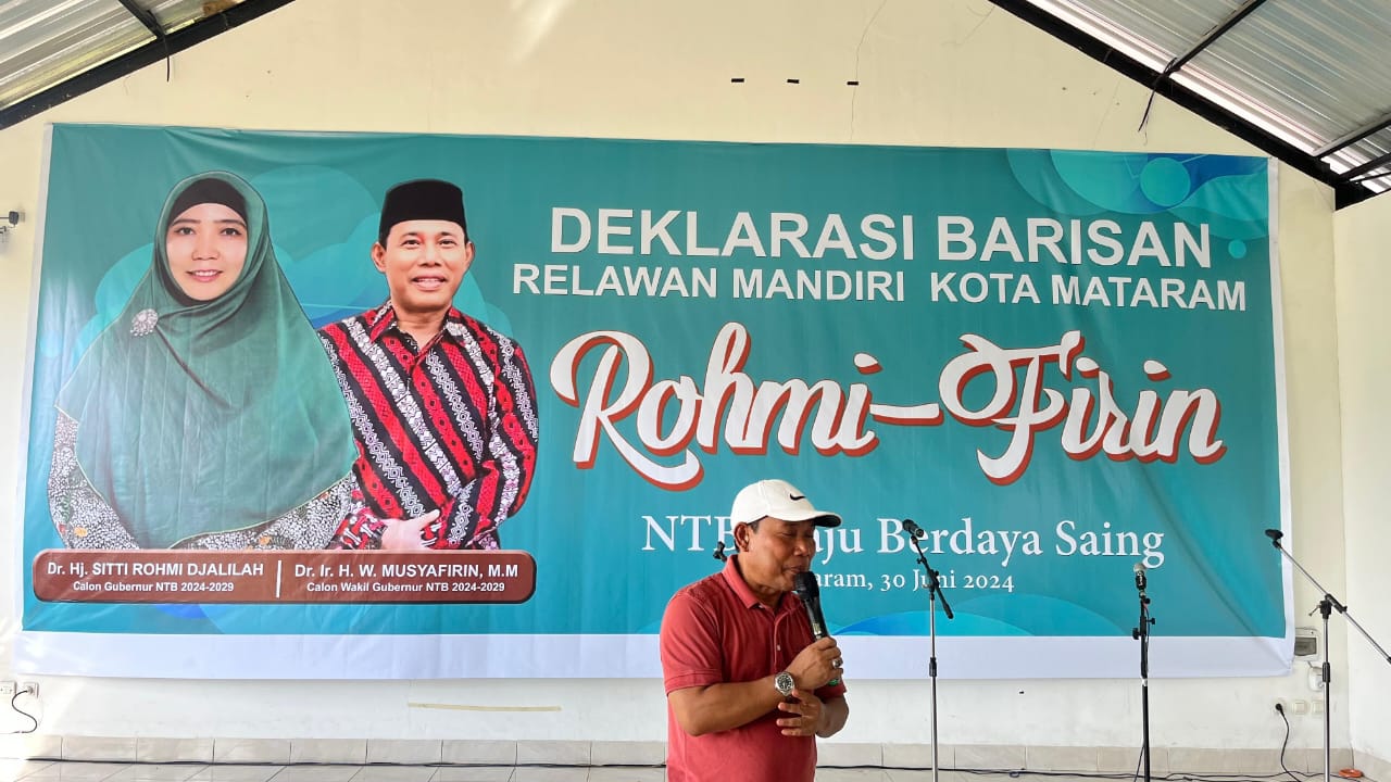 Berbicara dihadapan ratusan relawan se-Kota Mataram dalam kegiatan deklarasi dukungan Relawan Mandiri Barisan Rohmi – Firin di Lesehan Goyang Lidah, Kota Mataram, Ahad 30 Juni 2024, Haji Firin yang sehari sebelumnya menerima tanda Kehormataan Satya Lencana Wira Karya dari Presiden RI dan iBangda Award di puncak peringatan Hari Keluarga Nasional (Harganas) 2024 di Semarang, Jawa Tengah, bercerita tentang pentingnya pemenuhan hal dasar masyarakat, kebahagiaan keluarga yang menjadi kunci meningkatnya indeks pembangunan di suatu daerah.