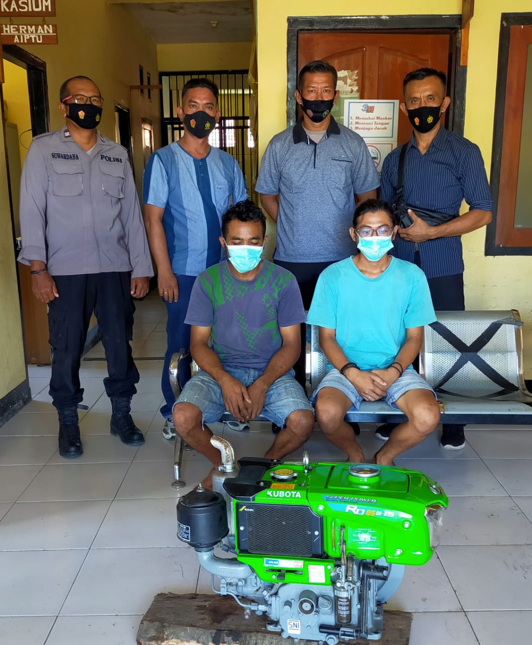 WW dan AS ditangkap lantaran mencuri 1 (satu) unit mesin Engkel merk Kubota milik Edy Chandrawan (46), juga warga Dusun Madya Desa Kempo.