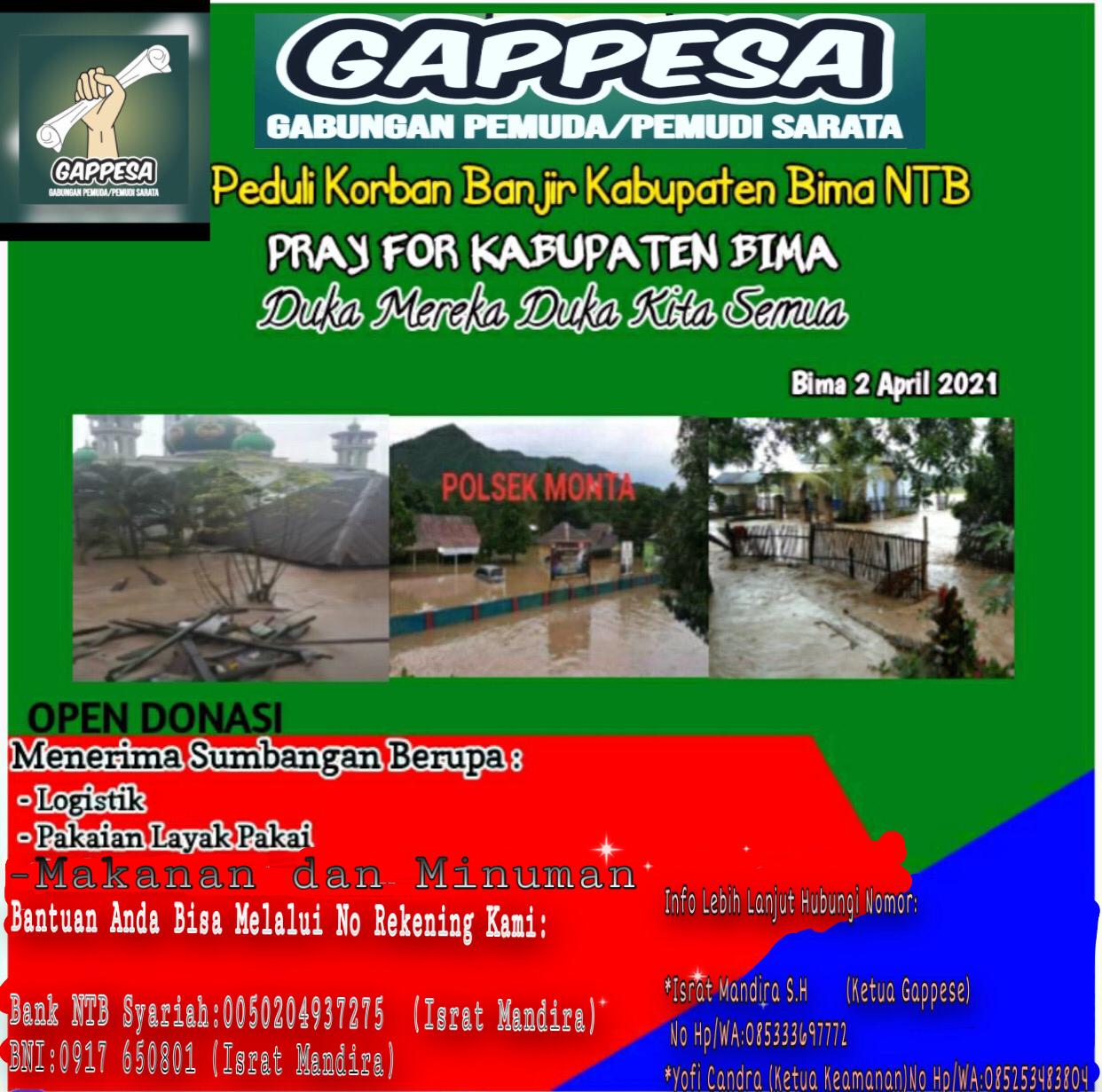“Posko peduli bencana Banjir di Sarata ini, untuk masyarakat Kabupaten Bima dalam membangun semangat kebangsaan dan kepedulian kemanusiaan sesama warga bangsa, tanpa membedakan ras, agama dan golongan, sebagaimana cita-cita luhur Gerakan Pemuda Sarata itu sendiri,” terang Ketua Gappesa.