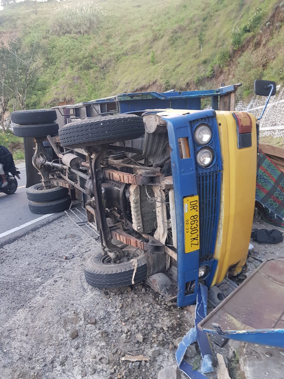 LOMBOK TIMUR – Ahyar Rosidi (33) tak mampu mempertahankan kecepatan truk yang dikemudikannya saat menuruni hutan Pusuk di wilayah Sembalun, Lombok Timur.