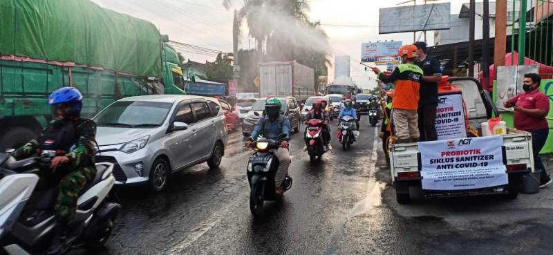 Merespon hal ini, tim Disaster Emergency Response-ACT DIY bersama Yayasan Rumah Panca Sila menggelar penyemprotan probiotik titik-titik keramaian di Yogyakarta, Sabtu (3/10). Penyemprotan probiotik di simpul keramaian dilakukan untuk mengurangi potensi penyebaran virus yang bisa saja menyebar lewat udara. Bahan utama cairan probiotik yang terbuat dari bahan alami ini yang tidak berdampak buruk jika terkena makhluk hidup, makanan, serta tidak merusak kendaraan yang melintas.