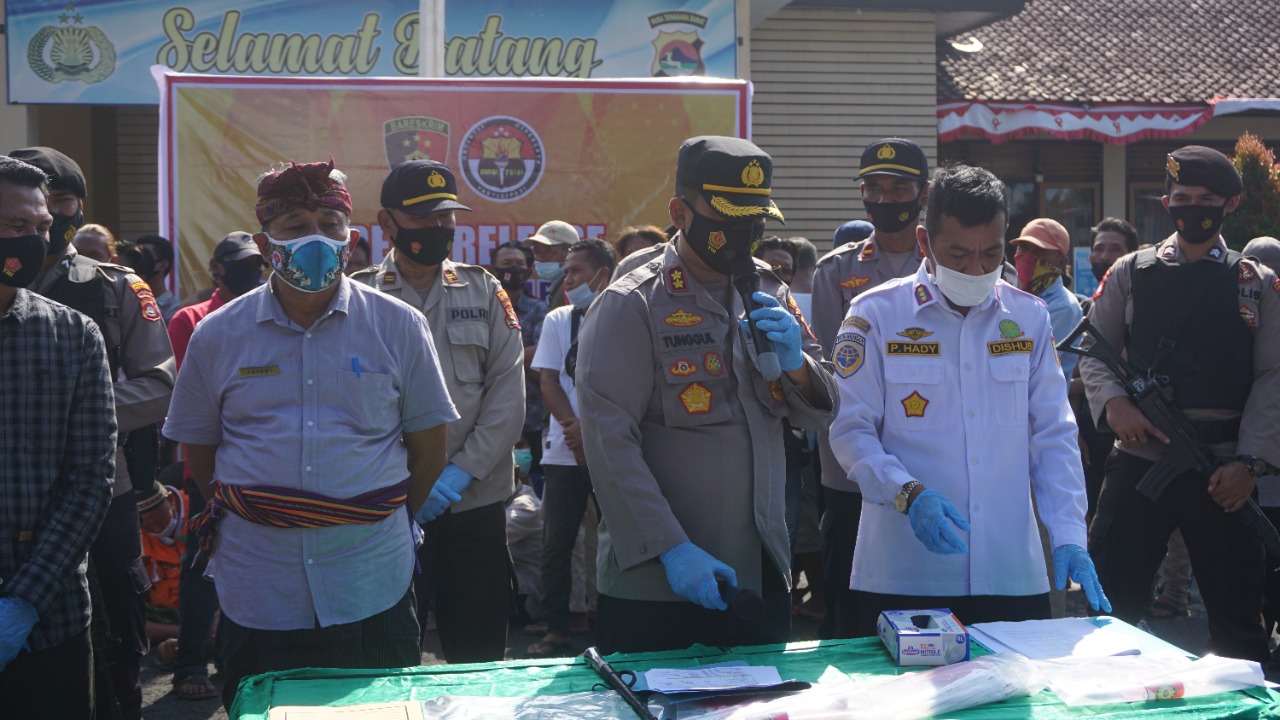 TERBONGKAR: Aparat kepolisian dan warga saat melakukan olah TKP di Desa Pengembur, kemarin.