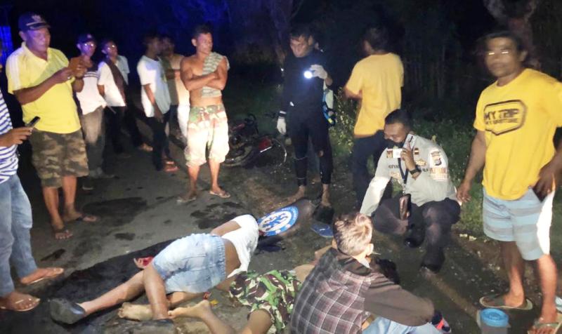 Kapolsek Pekat IPDA Muh. Sofyan hidayat, S.Sos yang sedang melaksanakan patroli cipkon langsung menuju TKP. Terlihat tiga orang korban tergeletak di aspal dan tidak bisa bergerak dan sedang dikelilingi warga sekitar. Setelah dilakukan pengecekan, ketiga korban dalam keadaan luka berat dan salah satunya meninggal dunia. Hasil olah TKP yang diperkuat dengan keterangan korban, dugaan sementara kecelakaan tersebut terjadi akibat mabuk miras. Kendaraan melaju kencang dan sempat menabrak batu besar (deker) yang berada di pinggir jalan. (SR)