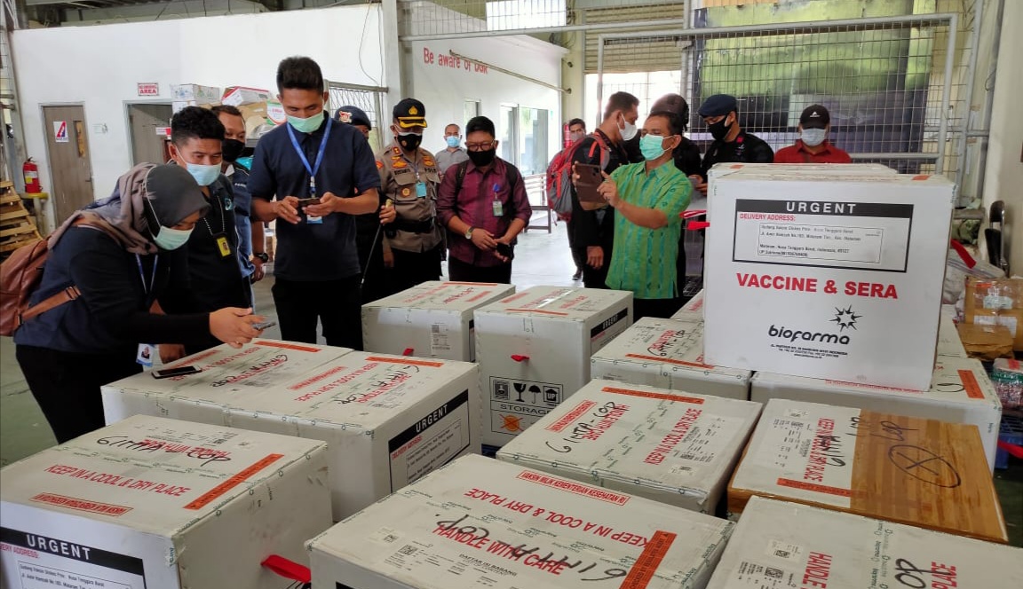 “Hasil cek bahwa 14 coli dengan isi per coli 1960 botol vaksin, sedangkan satu coli dengan isi 1320 botol vaksin. Setelah selesai melakukan pengecekan vaksin dimasukan ke mobil pendingin,” jelasnya.
