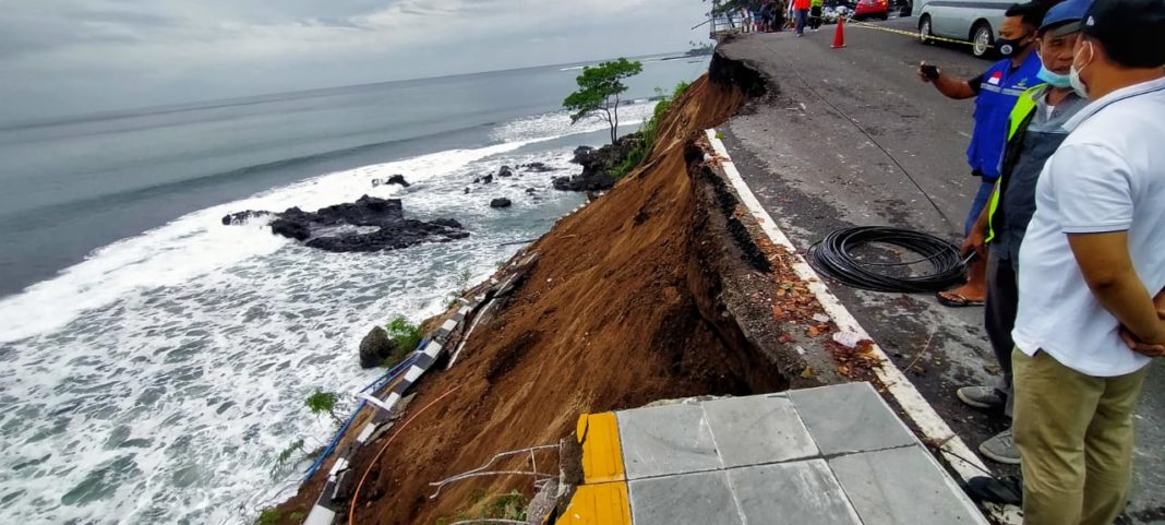 GIRI MENANG – Kejadian Longsor tebing Senggigi, Lombok Barat (Lobar), Sabtu pagi (6/2/2021) menjadi perhatian anggota DPRD NTB. Anggota Komisi IV Hasbullah Muis langsung turun melihat talud dan pembatas jalan di dekat Kafe Alberto yang ambruk tersebut.