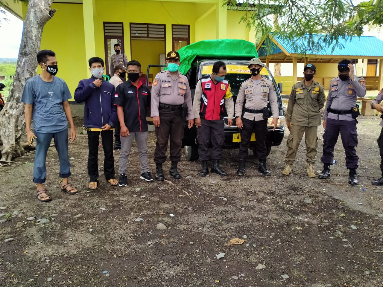 ”dalam perjalanan untuk mengantisipasi datangnya hujan, mobil kami tutup dengan terpal. Agar Logistik Pilkada  tidak terkena air hujan,” tutur AKP Hanafi.