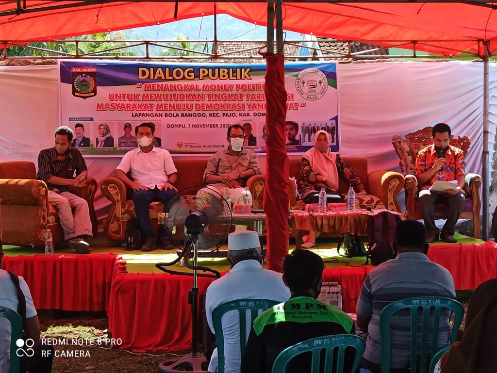 Dompu Siberindo.co – Dalam rangka menangkal money politic pada Pilkada 2020 dan juga mewujudkan kesadaran masyarakat untuk berdemokrasi secara sehat tanpa adanya money politic, Himpunan Mahasiswa Pajo Mataram (HPMP) mengadakan dialog terbuka terkait hal tersebut. Sabtu (07/11/2020) sekitar Pukul 08.30 wita, bertempat di lapangan Sepakbola Desa ranggo Kecamatan Pajo.