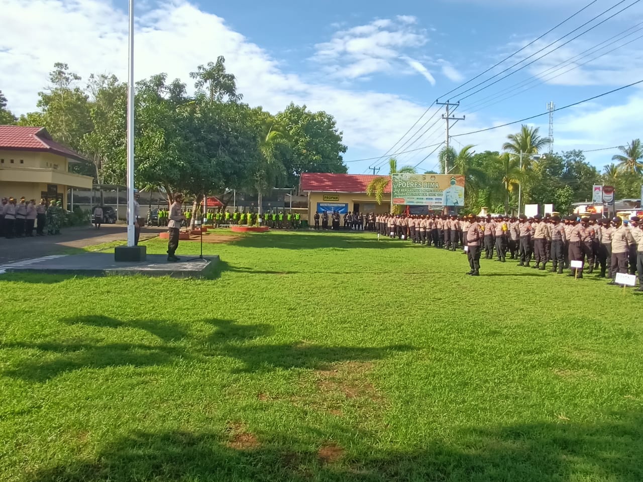 Polres Bima menggelar Apel Pergeseran Pasukan Pengamanan TPS. Personil yang di terjunkan untuk mengamankan pelaksanaan Pemungutan dan penghitungan suara di TPS sebanyak 390 personil dengan jumlah TPS sebanyak 576.