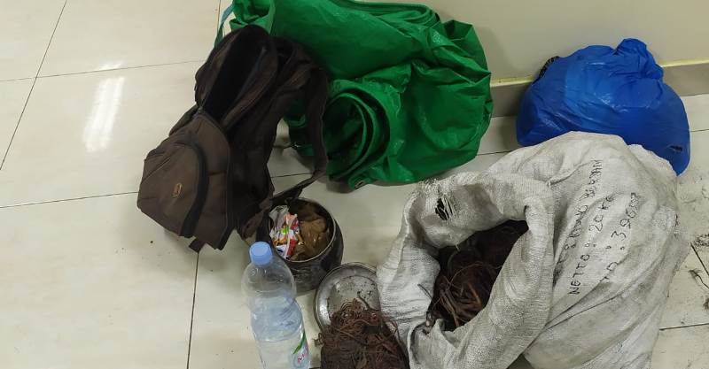 Usai mengambil kabel tembaga, ke lima terduga membawanya ke tenda untuk dipotong-potong sehingga mudah dibawa. Namun aksi tersebut diketahui oleh petugas keamanan yang bertugas saat itu dan meringkus para pelaku.