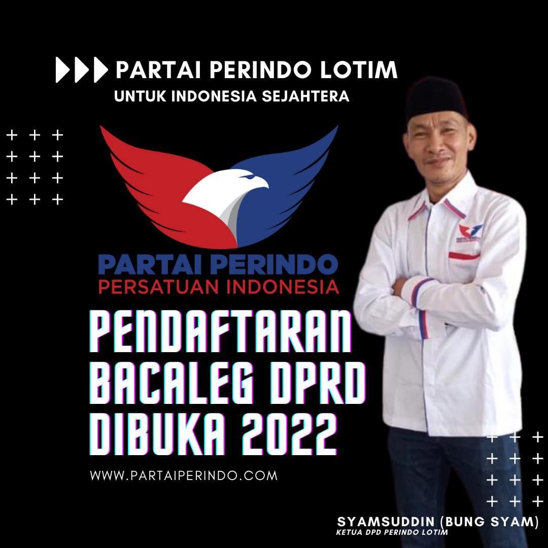 LOMBOK TIMUR, – Partai Persatuan Indonesia (PERINDO) Kabupaten Lombok Timur mulai membuka pendaftaran calon anggota DPRD dan DPR RI untuk Pemilu 2024. Pendaftaran yang dibuka 10 Agustus 2022 hingga 1 Januari 2023 itu gratis alias tidak dipungut biaya.