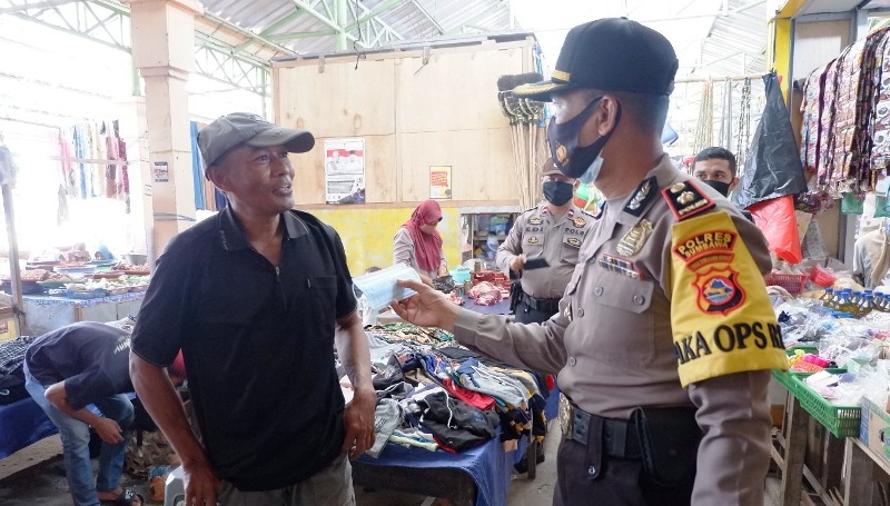 Wakapolres Sumbawa, Kompol Fauzan Wadi SH bersama personel yang terlibat Ops Aman Nusa didampingi Bhabinkamtibmas dan Babinsa, turun ke dua pasar yaitu Pasar Labuhan dan Pasar Kerato, Jumat (9/10) pagi tadi. Dalam kegiatan itu Wakapolres menghimbau warga pasar untuk tetap mematuhi protocol kesehatan, mengingat pasar sempat menjadi klaster penyebaran Covid. Kegiatan yang dilakukan orang nomor dua di jajaran Bhayangkara Sumbawa ini, sebagai implementasi dan tindak lanjut Inpres No. 06 Tahun 2020 tentang Peningkatan Disipilin dan Penegakan hukum Protokol Kesehatan dalam rangka pencegahan dan pengendalian Covid 19, Perda Prov NTB No. 7 Tahun 2020 tentang penanggulangan penyakit menular serta penyatuan visi kedepan masing masing Gugus Tugas Penanganan Covid 19 tingkat pusat sampai tingkat daerah. “Wajib gunakan masker, jaga jarak, cuci tangan dengan air mengalir dan sabun, serta hindari kerumunan,” kata Wakapolres melalui pengeras suara.