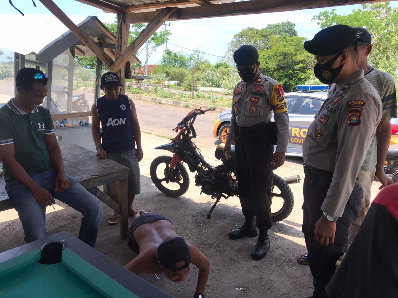 “siang ini kami menjaring 93 pelanggar yang tak bermasker, selanjutnya kami imbau dan berikan pemahaman agar menggunakan masker dan kami berikan sangsi seperti biasa yaitu push up dan menghafal Pancasila serta proklamasi. Untuk pelanggar perempuan kami suruh hafal Alfatihah dan surah pendek,” ungkapnya.
