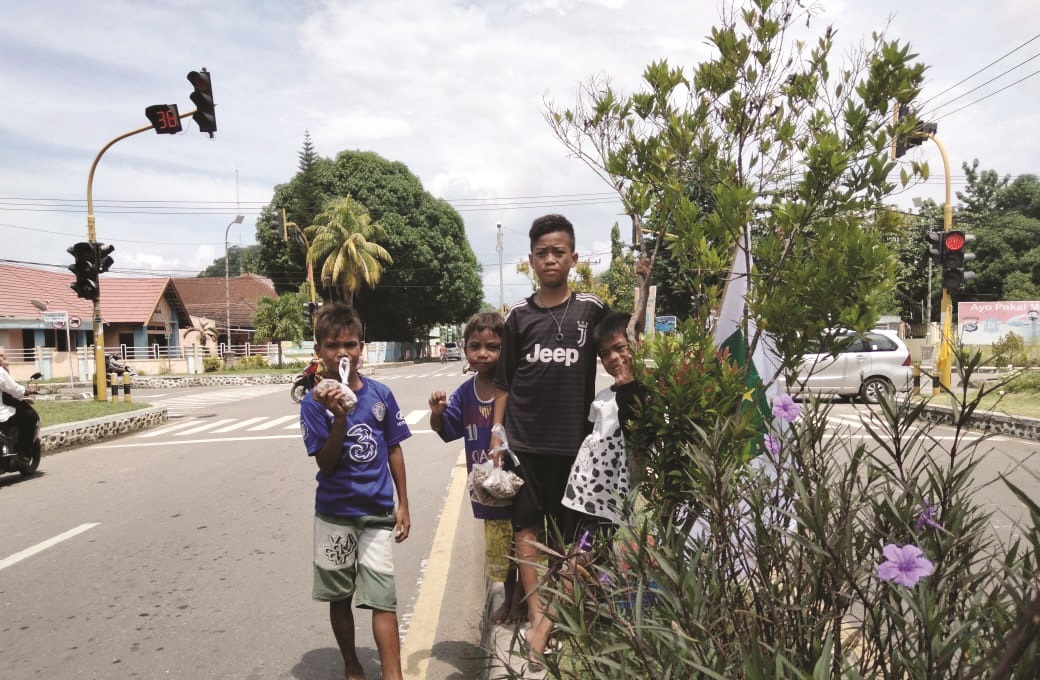 Seperti dilakukan siswa SDN 29 Kota Bima Kefin. Bersama beberapa orang teman sebaya, dia menjual kacang di perempatan lampu merah Gunung Dua.