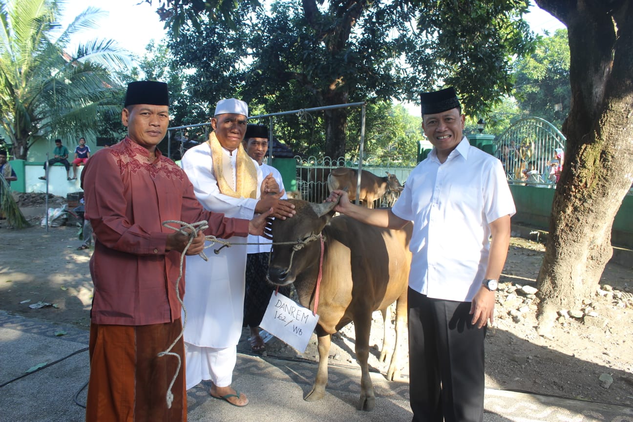 Penyerahan hewan kurban dilakukan di Masjid As-Syuhada Asrama Militer Gebang Mataram yang berlokasi di kelurahan Sapta Marga Kecamatan Cakranegara Kota Mataram, Minggu (10/7/2022).