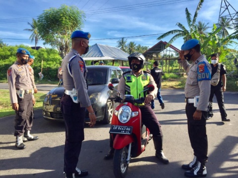LOMBOK UTARA- Belasan Anggota Bid Propam Polres Lotara Melaksanakan Razia Gaktiblin Didepan Pintu Masuk Mako Polres Yang dipimpin langsung Oleh Kasi Propam IPDA Mulyadi bersama 8 Anggota Provoost dan 2 Anggota Paminal Polres lotara.Senin 11/01/2021.