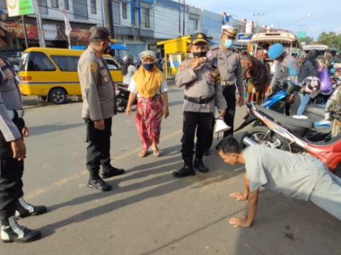 Heri dan anggota lalu keluar menuju area parkir di luar Pasar Kebon Roek. Pelanggaran protokol kesehatan banyak juga didapati. Didominasi oleh jukir yang tidak menggunakan masker. Mendapat laporan jukir sudah sering melanggar. Jukir yang melanggar tidak lagi hanya diberikan teguran. Tapi diikuti sanksi hukuman push up. ‘’ Itu karena dia melanggar. Tadi ada yang disanksi push up jukir di sana,’’ tegasnya.