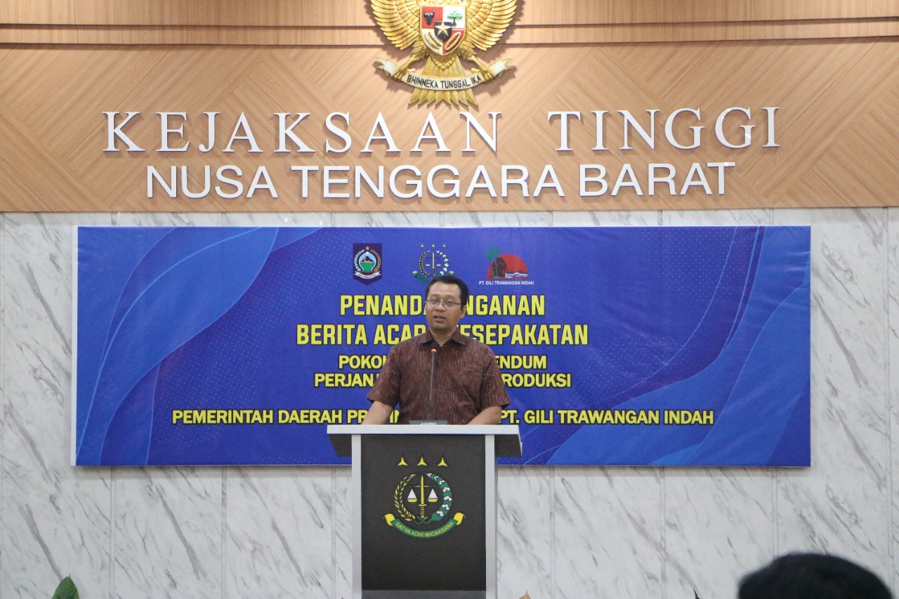 MATARAM-Pemerintah Provinsi Nusa Tenggara Barat dan PT Gili Trawangan Indah menandatangani berita acara kesepakatan pokok pokok addendum perjanjian kontrak produksi. Sedikitnya sembilan kesepakatan dalam addendum kontrak produksi pengelolaan aset lahan seluas 65 Ha di Gili Trawangan akan dibahas berkelanjutan antara tim Pemprov NTB yang diketuai oleh Kepala Kejaksaan Tinggi sebagai pengacara negara bersama pengusaha Winoto dan direksi PT GTI.