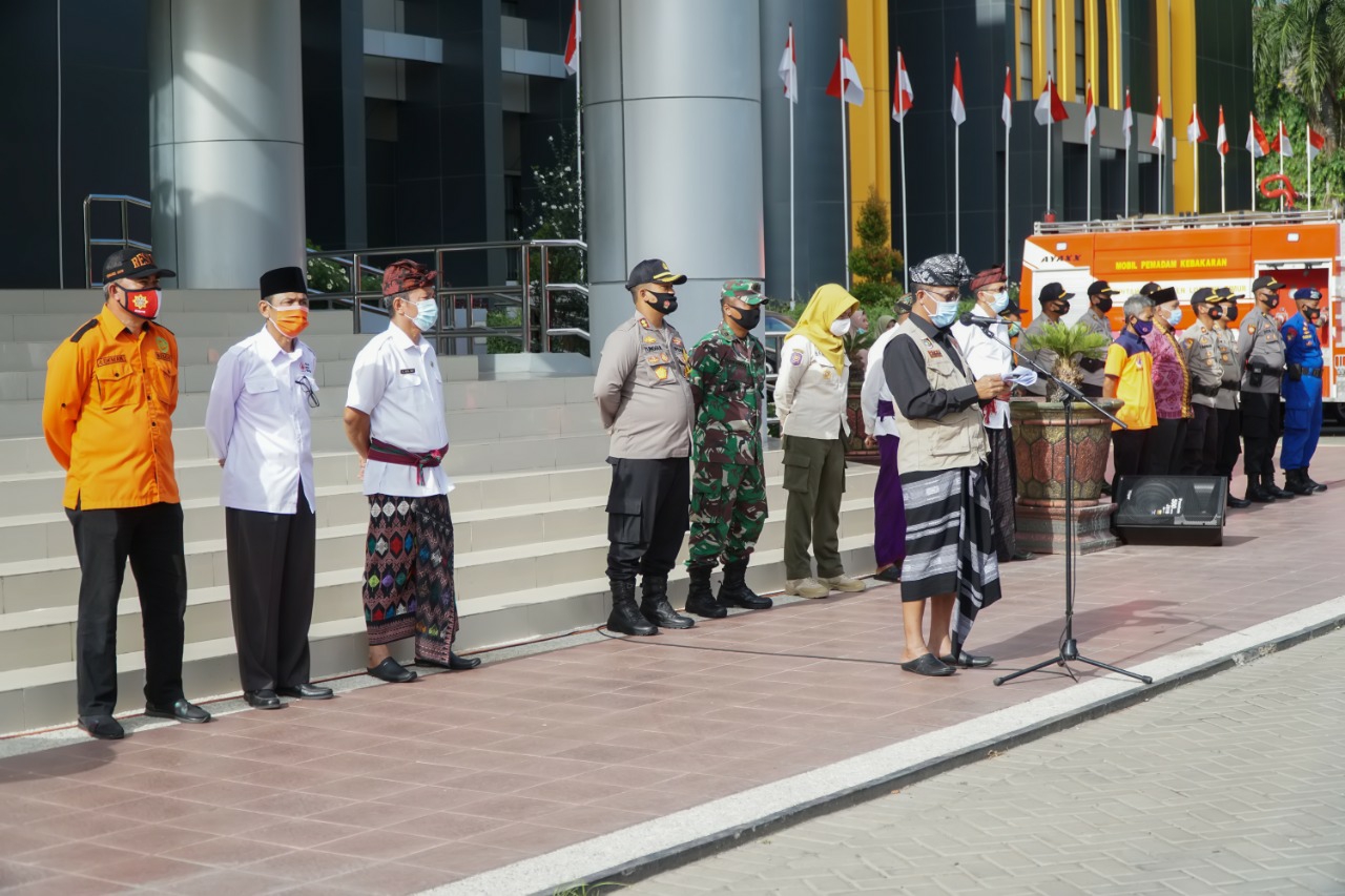 LOMBOK TIMUR- Sekretaris Daerah Kabupaten Lombok Timur H.M. Juaini Taofik memimpin langsung Apel Kesiapsiagaan Bencana Alam yang berlangsung di Halaman Kantor Bupati Lombok Timur(Lotim) pada, Kamis (12/11/2020).