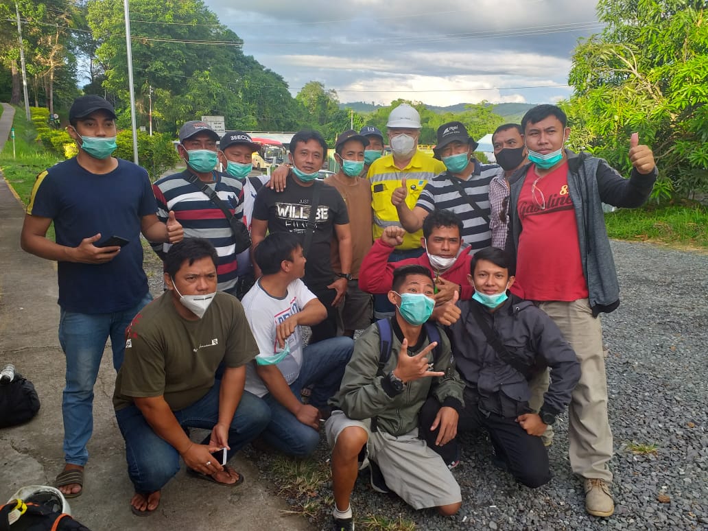 Tenaga Kerja Reliner asal KSB di Bandara International Hasanuddin Makassar saat bertolak menuju perusahaan tambang emas di Manado