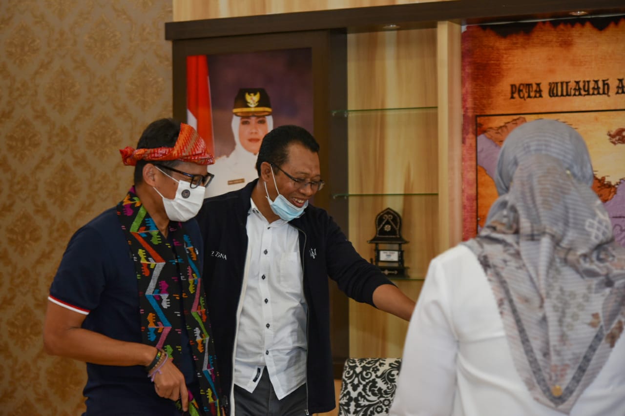 MATARAM-Gubernur Nusa Tenggara Barat, Dr. H. Zulkieflimansyah, SE, M. Sc mengajukan program pengembangan Geopark Tambora Pulau Sumbawa langsung kepada Menteri Pariwisata dan Ekonomi Kreatif (Menparekraf) RI, Dr. H. Sandiaga S. Uno, BBA, M.BA, saat kunjungan ke Bima, Minggu (14/06/2021).