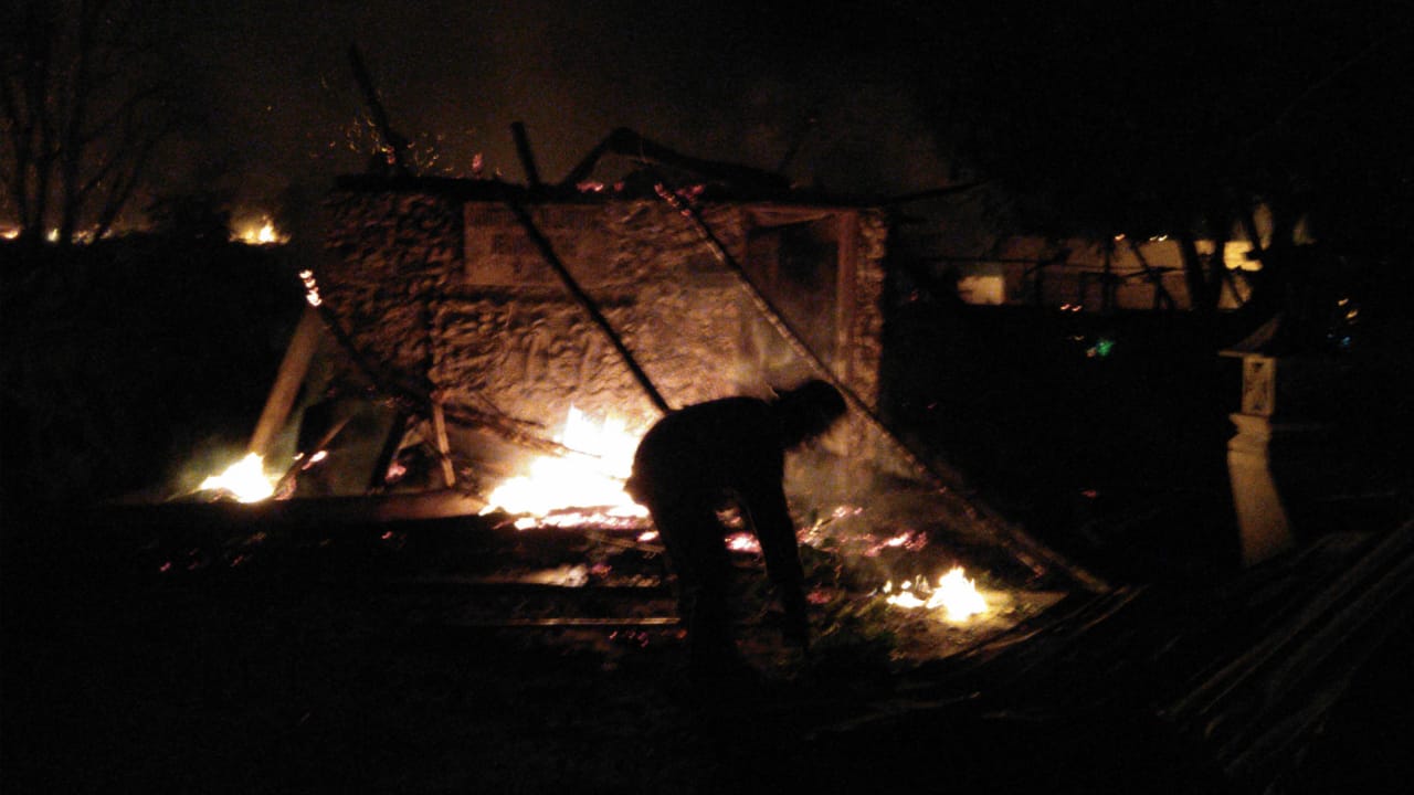 Tak berselang lama kobaran api menyambar di seluruh bangunan dan dalam sekejap menghanguskan seluruh bangunan yang ada.