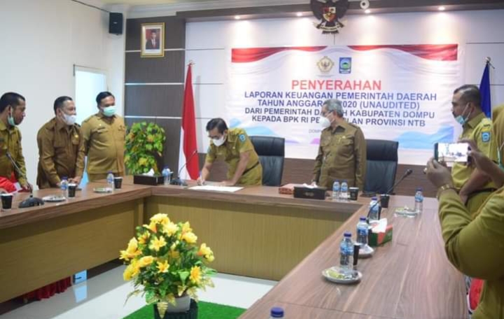 Mataram,- Pemerintah Daerah Kabupaten Dompu, menyerahkan Laporan Keuangan Pemerintah Daerah (LKPD) tahun anggaran 2020, kepada Badan Pemeriksa Keuangan (BPK) Wilayah Provinsi Nusa Tenggara Barat.