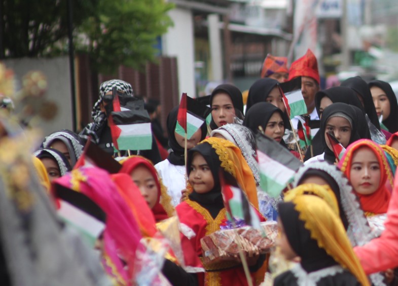 “ Isu Palestina ini diangkat tidak direncanakan, namun inilah bentuk respon keprihatinan masyarakat kita terhadap isu kemanusian yang dipertontonkan dunia saat ini, ini pelajaran yang baik bagi generasi kita terutama anak-anak SD karena bagaimanapun penjajahan tidak boleh ada lagi dimuka bumi ini,” ujar Roy Marhandra, S.SE.M.Si Sekretaris Lembaga Adat Tana Samawa (LATS) KSB sebagai penyelenggara pawai budaya Harlah KSB.