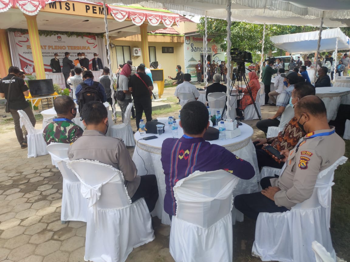 Rapat Pleno Terbuka Penetapan Pasangan Calon Bupati dan Wakil Bupati Terpilih Hasil Pemilihan Bupati dan Wakil Bupati Bima tahun 2020 yang di laksanakan Jumat tanggal 19/2/ 21 pukul 09.00 wita bertempat di Depan Kantor KPU Kabupaten Bima Desa Panda Kecamatan Palibelo Kabupaten Bima.