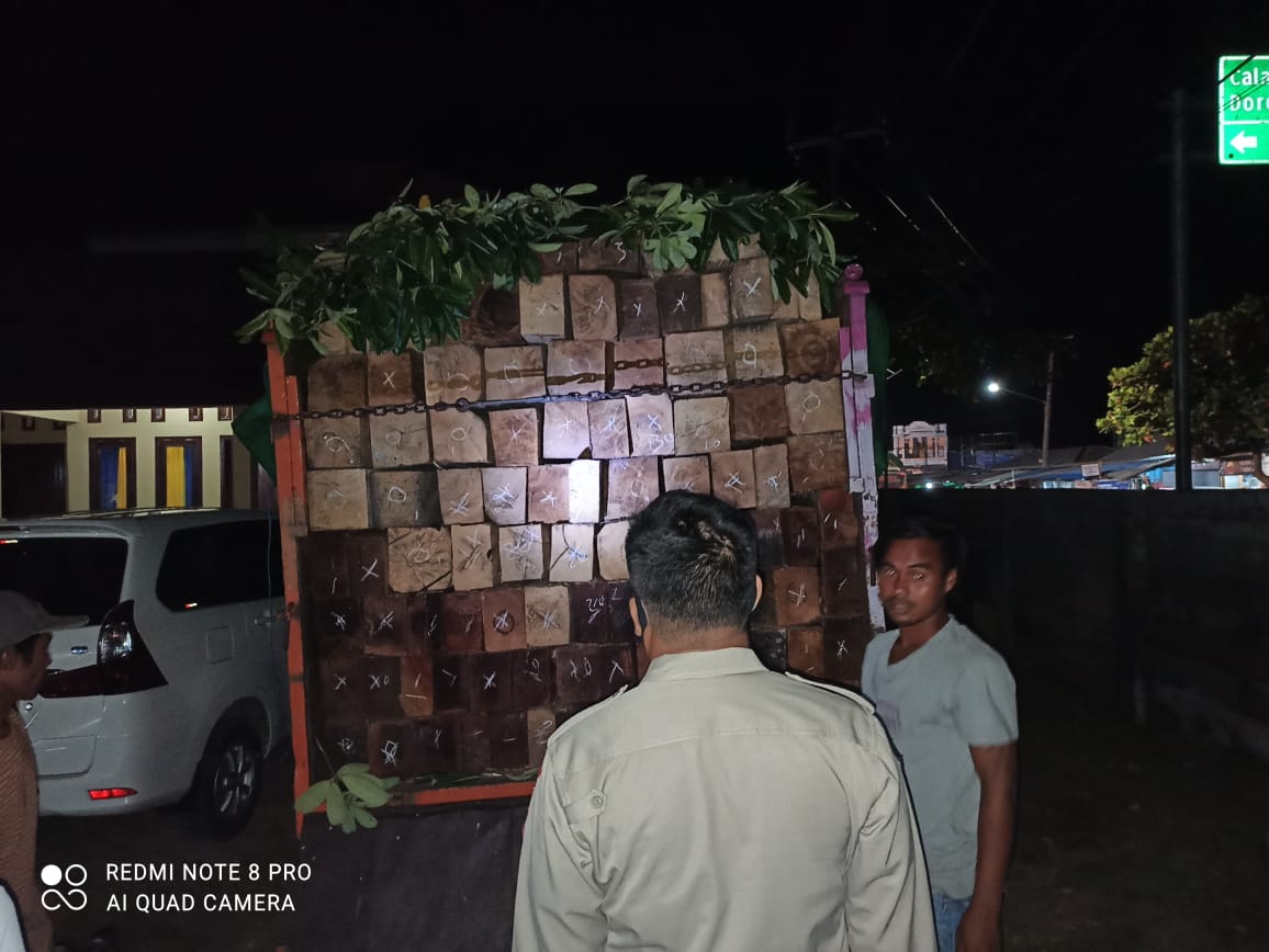 “Awalnya anggota melihat ada truk yang dibungkus dengan terpal melintas depan Mapolsek. Diduga di dalamnya ada kayu,” kata Kapolsek.