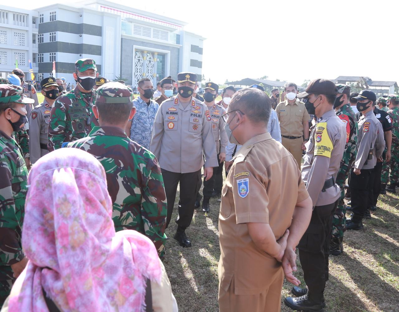 LOMBOK TENGAH – Kepolisian Daerah Nusa Tenggara Barat (Polda NTB) bersama Korem 162/WB juga Pemerintah Kabupaten Lombok Tengah (Pemkab Loteng) menggelar Apel Gabungan Tim Vaksinator, di Halaman Kantor Bupati, Praya, Kabupaten Lombok Tengah (Loteng), Provinsi Nusa Tenggara Barat (NTB), Minggu (19/9/2021).