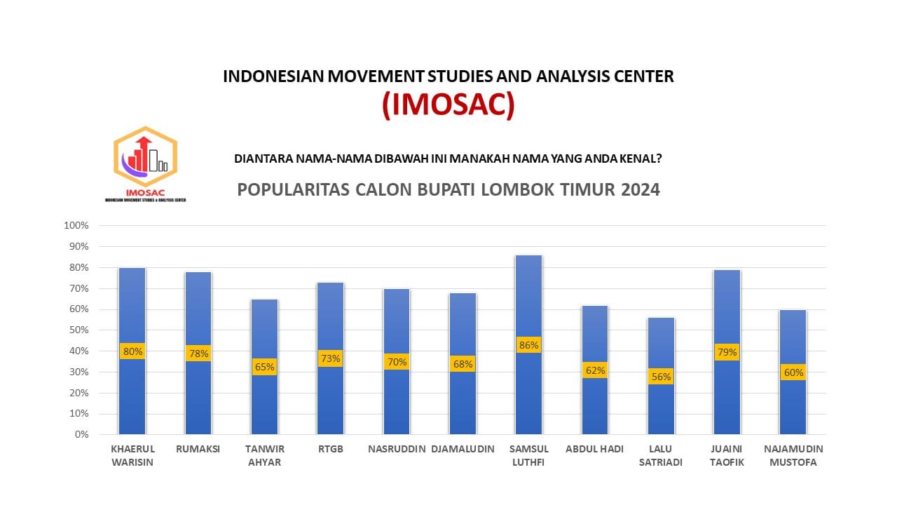 Menurut Direktur Risert Indonesia Movement Studies And Analysis Center (IMOSAC), Yasin Jaelani, berdasarkan temuan IMOSAC di lapangan, Popularitas tertinggi bakal calon Bupati Lombok Timur Anggota DPR RI Dapil NTB 2 Fraksi Partai NasDem dan merupakan Mantan Wakil Bupati Lombok Timur, HM. Syamsul Luthfi, SE.,M.Si.