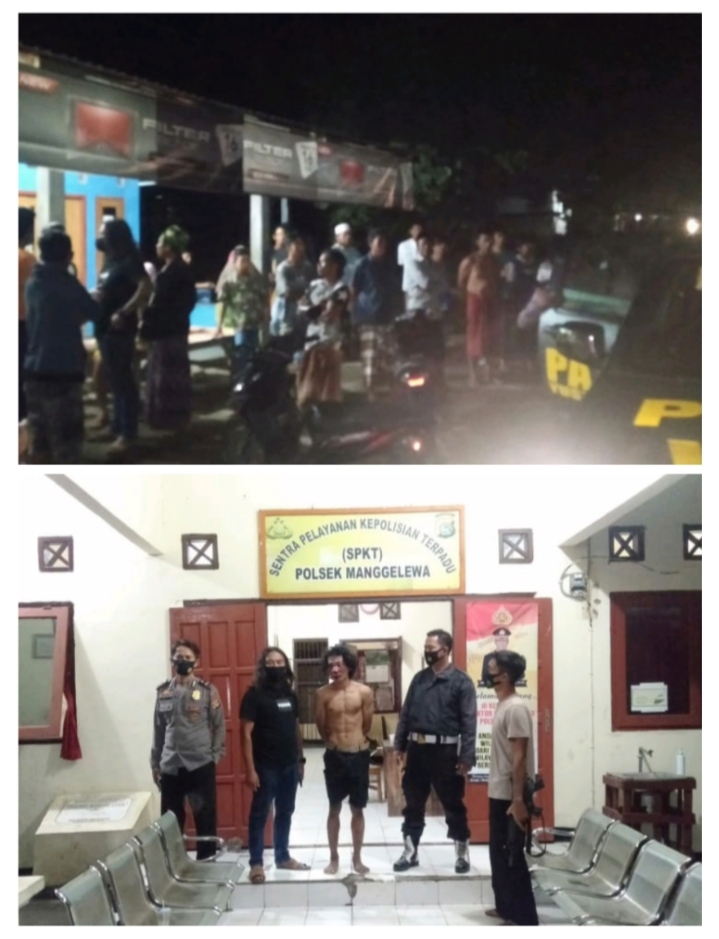 Mendapat laporan warga, anggota Polsek Manggelewa dipimpin Aiptu Ida Ramdhani segera mendatangi TKP dan berupaya mengevakuasi AW dari amukan massa, namun upaya persuasif dan pendekatan yang dilakukan anggota Polsek Manggelewa berhasil meyakinkan warga, sehingga AW berhasil diamankan.
