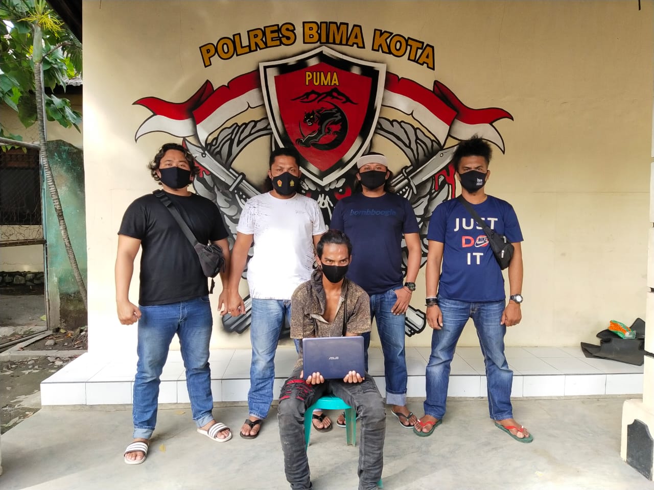 Kapolres Bima Kota melalui Kasat Reskrim IPTU Hilmi Manossoh Prayugo, S.IK menjelaskan kronologis kejadian, bahwa sebelumnya TIM melakukan penyelidikan terhadap pelaku. Kemudian berhasil mendapatkan rekaman CCTV pada saat pelaku hendak menjual Laptop tersebut, dari rekaman CCTV dan keterangan saksi-saksi. TIMpun berhasil mengidentifikasi pelaku, kemudian tim pun mendapatkan informasi bahwa pelaku berada di salah satu konter yang beralamat Jalan Lintas Kelurahan Sadia Kecamatan Mpunda Kota Bima. Rabu, (20/01/2021) sekitar pukul 13.30 wita. Tidak menunggu lama, TIM yang di pimpin oleh Katim Puma Polres Bima Kota AIPDA Abdul Hafid bergegas cepat menuju lokasi pelaku.