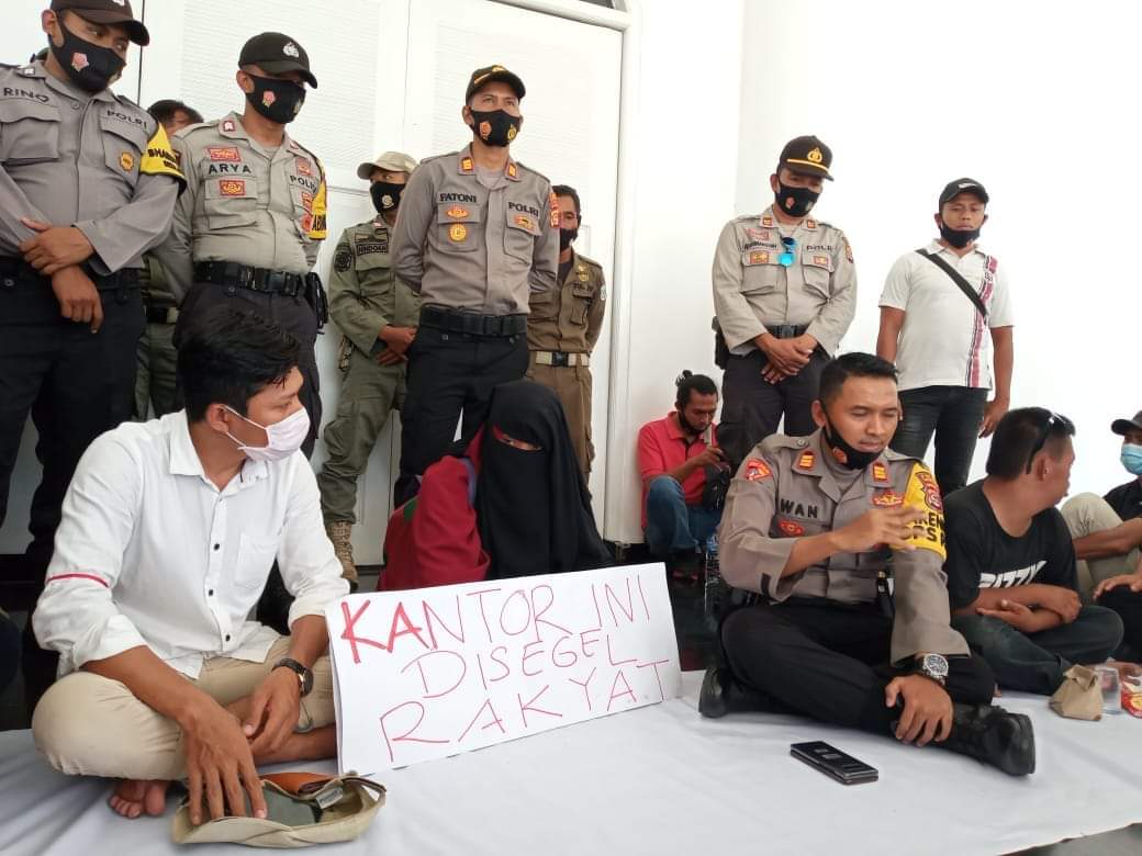 Sumbawa Barat – Belasan Pemuda yang melakukan aksi unjuk rasa, Senin (21/9) menyegel Graha Fitrah, Kantor Bupati Sumbawa Barat.