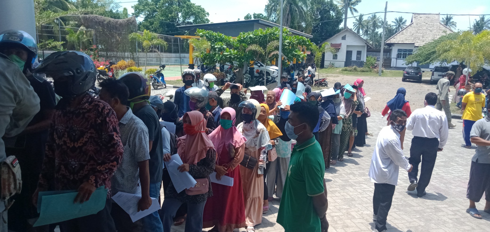 LOMBOK TIMUR – Antrean masyarakat yang hendak mengajukan permohonan Bantuan Langsung Tunai Usaha Mikro Kecil dan Menengah (BLT UMKM) di halaman kantor Bupati Lombok Timur, Rabu (21/10), penuh sesak.