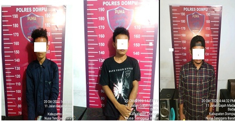 Kapolres Dompu melalui Paur Subbag Humas, AIPTU Hujaifah dalam keterangan persnya mengatakan, ketiganya ditangkap bermula laporan seorang ibu rumah tangga bernama Siti Masitah (51) warga Kelurahan Dorotangga, Kecamatan Dompu atas kasus perampokan yang menimpa anaknya Muhammad Adiyat (14). Menurut keterangan korban, kasus itu terjadi pada Selasa (20/10) dinihari pukul 03.00 Wita. Saat itu korban sedang mendorong sepeda motornya yang kehabisan bahan bakar, berjalan dari arah Kelurahan Monta Baru menuju Kandai Dua. Setibanya di Perempatan Cakre, korban dihampiri 3 orang menggunakan dua sepeda motor yang menawarkan bantuan untuk menggeret sepeda motornya.