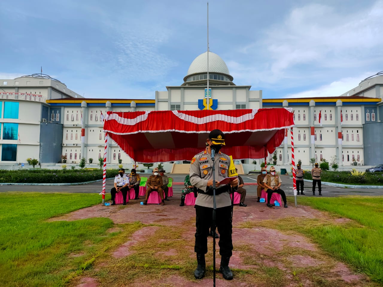 Apel gelar pasukan yang dipimpin Kapolres Dompu AKBP Syarif Hidayat SH SIK, juga dihadiri Sekda Dompu Drs Muhibuddin MSi Dandim 1614 Dompu Letkol Inf. Ali Cahyono S.Kom, Ketua Pengadilan Negeri Dompu Mukhlasuddin SH, MH., Kepala Dinas Perhubungan Ir. Syarifuddin , Kepala BPBD Jufri ST, MT, Sekertaris Pol. PP H. Khaerudin SH, Kabag Tata Pemerintahan A.Khalik S.Sos, serta PJU Polres Dompu.