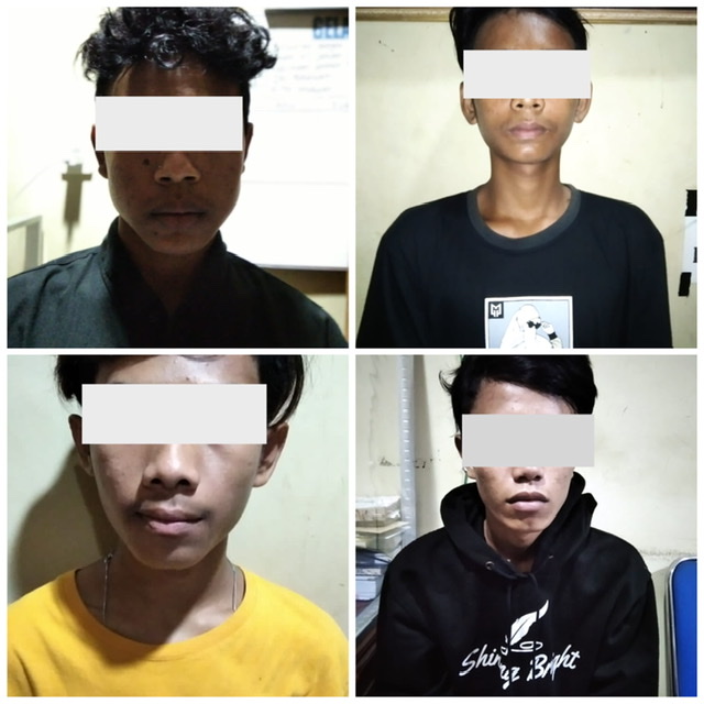 “Korban melaporkan kejadian tersebut, dengan sigap dan tidak menunggu waktu yang lama Tim langsung memburu 4 terduga pelaku. Akhirnya sekitar satu hari satu malam diburu, ke empat terduga pelaku berhasil diamankan,” jelas Kanit Reskrim.