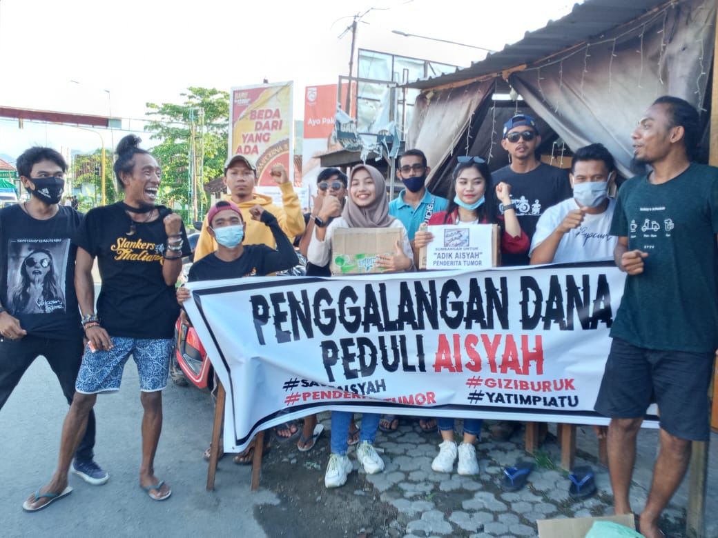 Ini tercermin saat mereka melakukan aksi sosial penggalangan dana pada Jumat (23/10), untuk Aisyah seorang bocah yang sejak 2 tahun lalu menderita tumor dan hingga hari ini masih berbaring lemas di RSUD. Asy-Syifa.