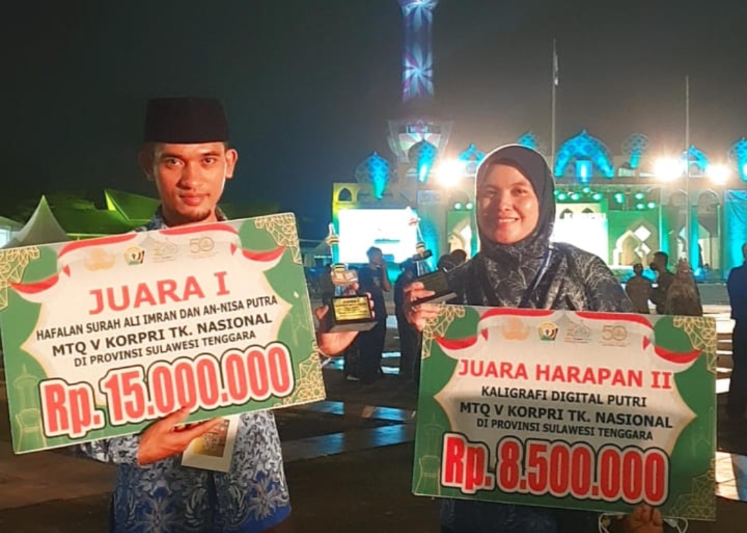KENDARI–Provinsi NTB kembali menoreh prestasi di tingkat nasional. Kali ini, di ajang MTQ KORPRI Nasional V yang dilaksanakan tanggal 12 – 19 November di Kendari Provinsi Sulawesi Tenggara. Kafilah Nusa Tenggara Barat berhasil memboyong dua piala dari 11 cabang yang diperlombakan.