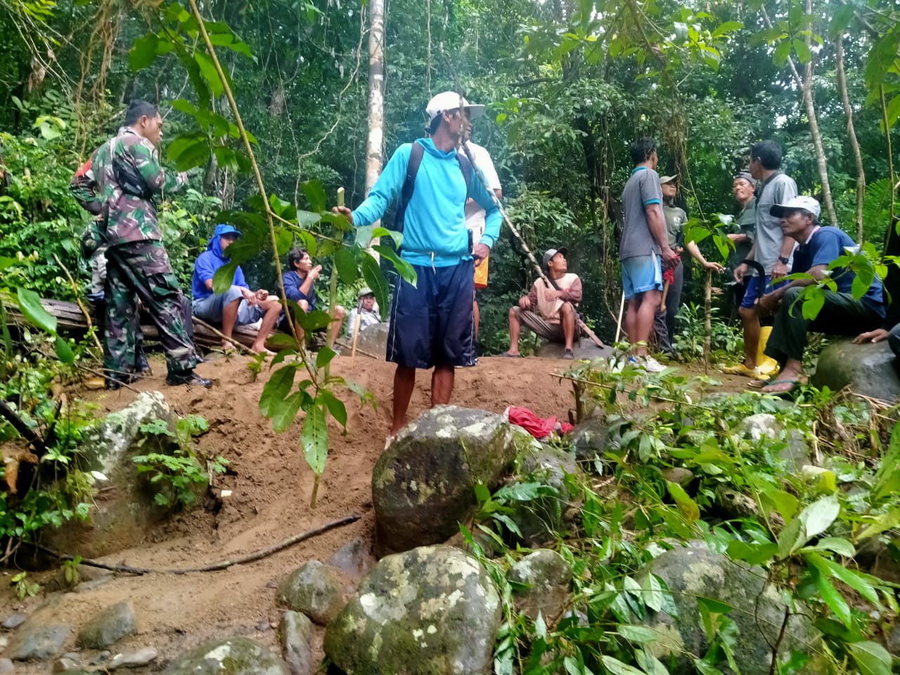 Pencarian pun mulai dilakukan oleh Bhabinkamtibmas Desa Tatar dan Bhabinsa Desa Tatar bersama dengan masyarakat mulai Minggu 24 Januari 2021 dari pukul 07.00 wita sampai pukul 17.00 wita, namun korban belum ditemukan. Pencarian dihentikan karena terkendala oleh hujan lebat dan air sungai jalur menuju lokasi gunung Tongo Loka mengalir deras sehingga pencarian tidak bisa dilanjudkan pada saat itu.