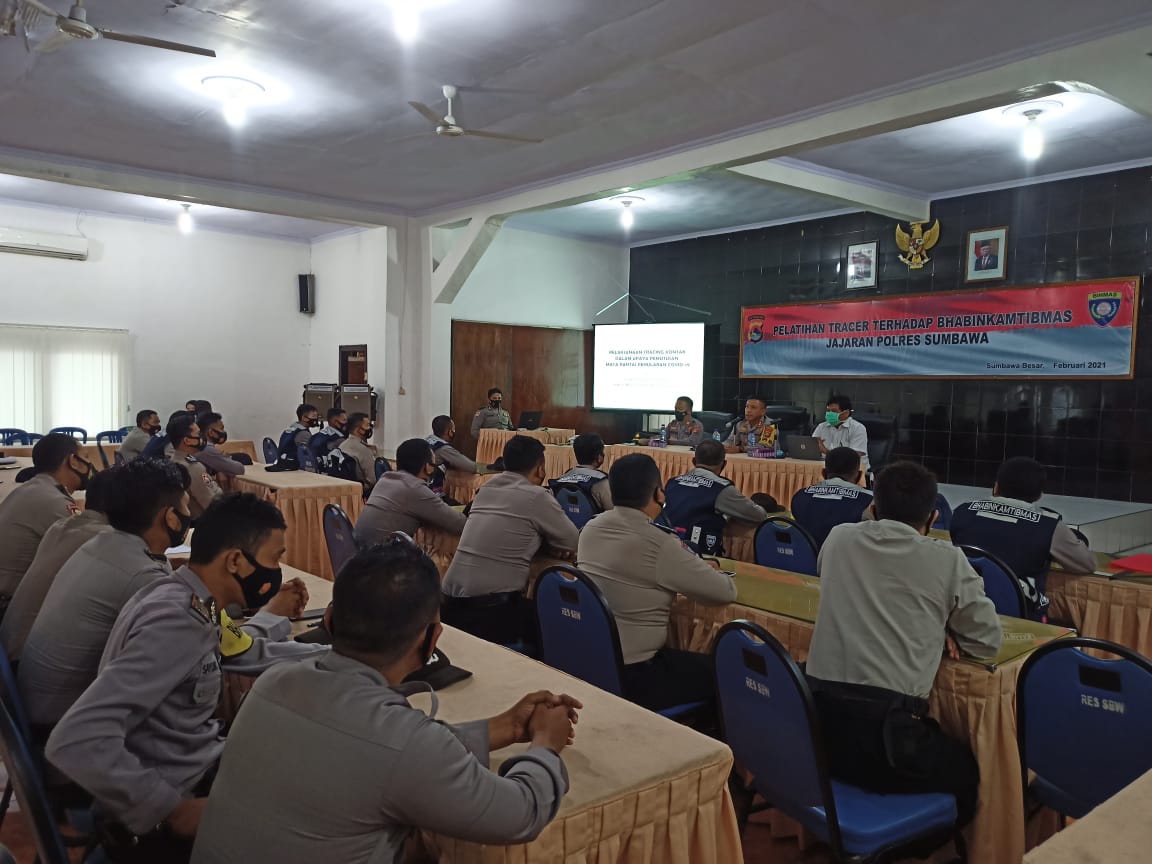 Sumbawa Besar, -Polres Sumbawa menggelar Pelatihan Tracer Covid-19, dalam rangka mengantisipasi penyebaran virus corona dan untuk memutus mata rantai covid-19, salah satunya dengan cara pelacakan kontak erat (Tracer), rabu (24/2/21), untuk menambah pengetahuan dan kesamaan persepsi dalam melaksanakan tugas, melacak dan mengidentifikasi orang yang terkonfirmasi selama tiga hari dari tanggal 24 – 26 Februari 2021 di Rupatama Mapolres Sumbawa.