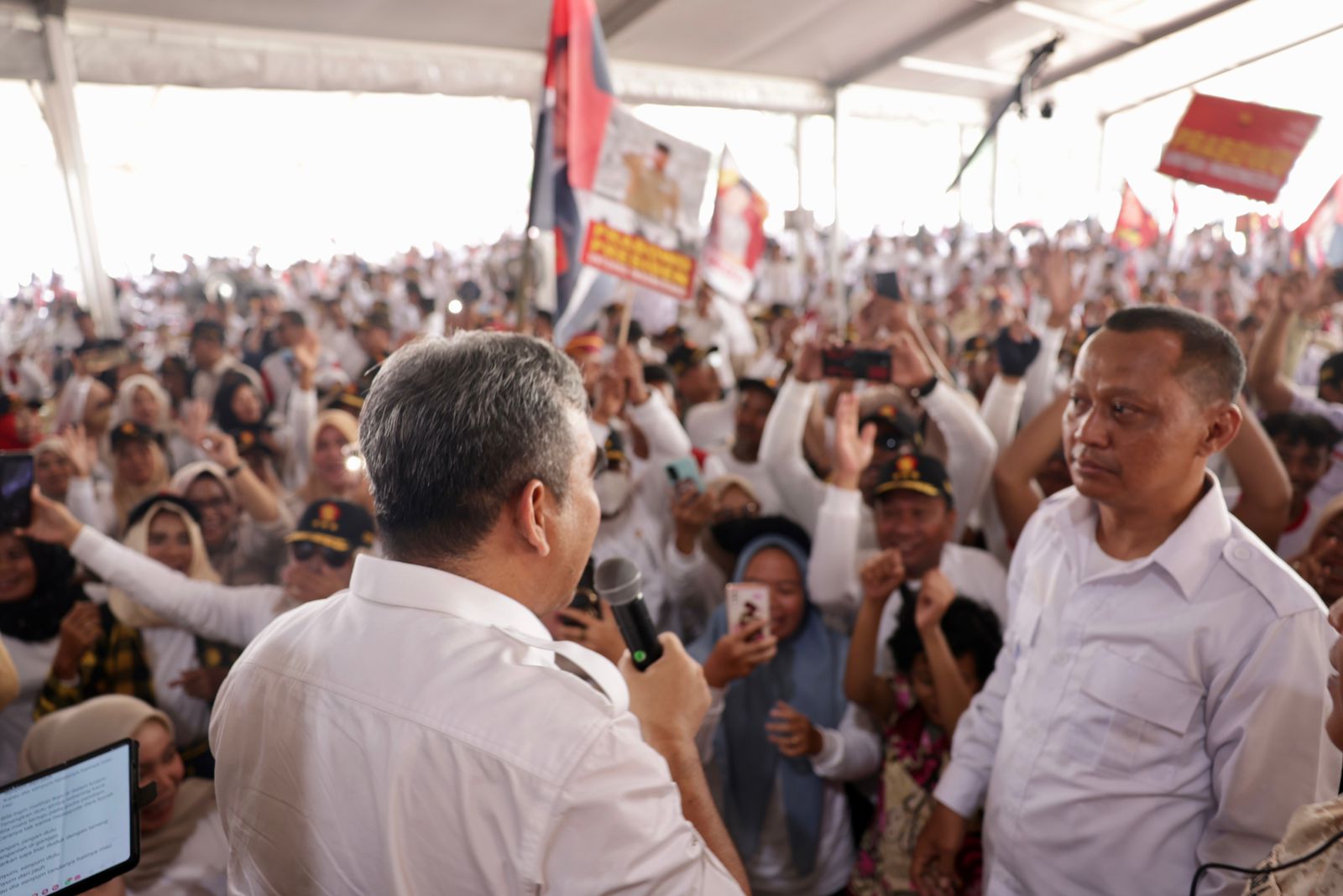 Sekjen Partai Gerindra Ahmad Muzani menghadiri konsolidasi akbar Partai Gerindra Kabupaten Bogor di Jonggol, Sabtu (26/8). Teriakan Prabowo presiden menggema dari ribuan kader Gerindra yang hadir ketika Sekjen Gerindra itu hadir.