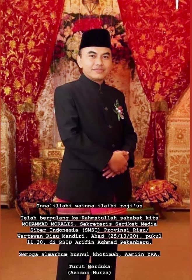 “Innalillahi wainna ilahi rajiun. Hari ini kita kehilangan wartawan yang tunak dan mencintai profesinya. Sosok wartawan yang pantas untuk dijadikan teladan. Selamat jalan Saudara kami Mohammad Moralis. Semoga Allah SWT memberikan tempat terbaik, dan keluarga yang ditinggalkan senantiasa diberi kekuatan dan kesabaran”