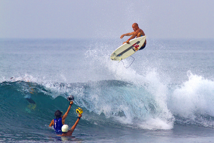 Informasi yang berhasil dihimpun wartawan, sebelum datang ke Lakey, Slater menyempatkan diri untuk menerima tantangan dari beberapa peselancar lokal Bali dan memasuki salah satu beach break terbaik di Bali (Idin)