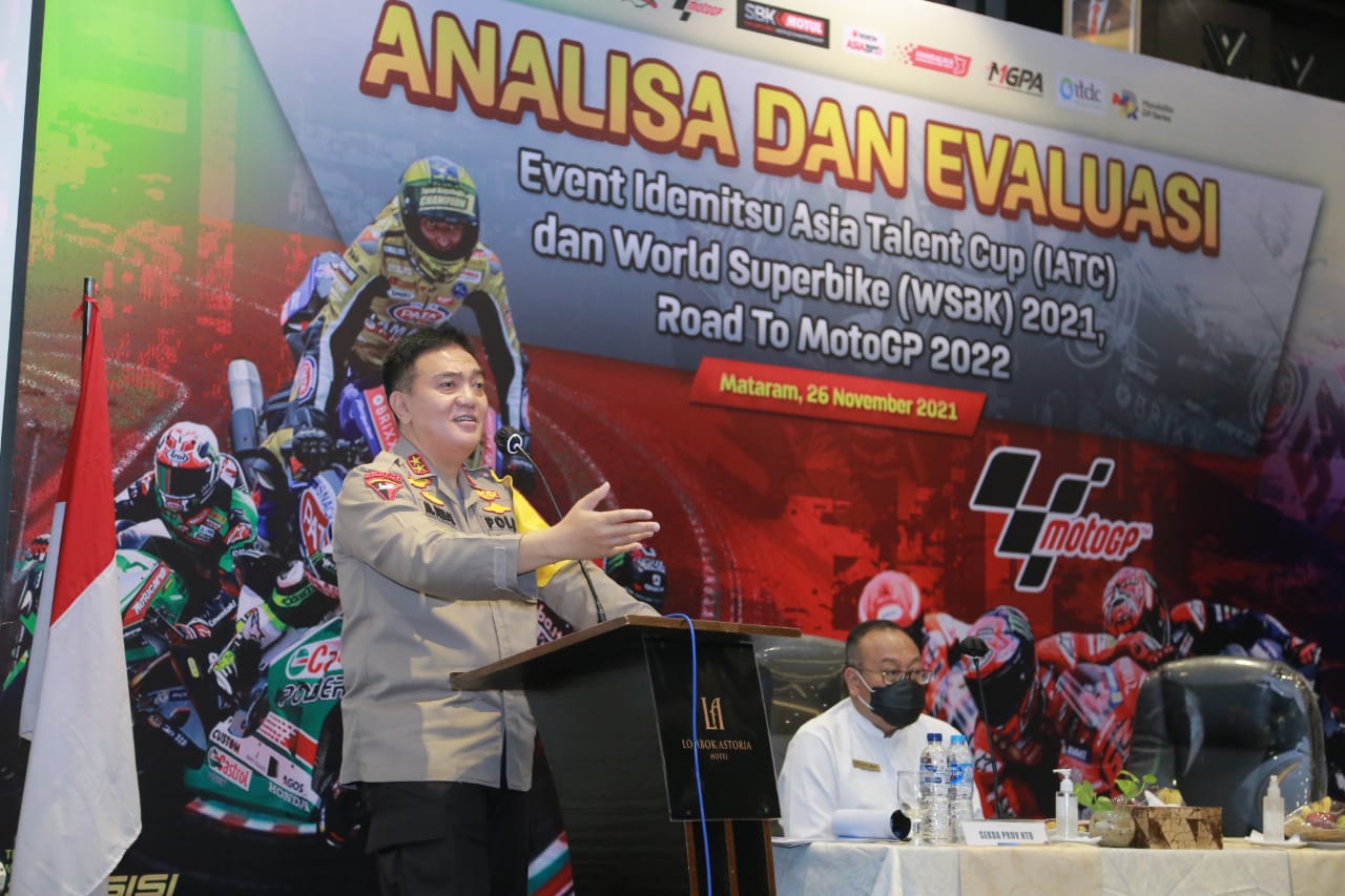 “Kegiatan ini tujuannya ada dua, yang pertama untuk menyempurnakan kekurangan yang ada, kedua kita ingin ada perbaikan mutu dari semua aspek, karena 2022, NTB akan menjadi tuan rumah diajang yang lebih besar lagi, yakni MotoGP,” jelas Kapolda NTB, usai Anev, Jumat (26/11/2021).