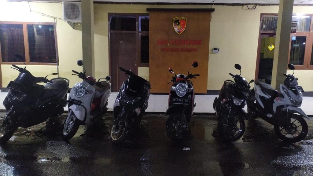 Saat ini enam pria tersebut tengah menjalani proses hukum di Mapolres Dompu. Barang bukti yang diamankan berupa 6 unit sepeda motor yaitu 2 unit Honda Scoopy, 2 Unit Honda Beat, 2 Unit Yamaha NMAX serta 5 Unit Handphone.(Rafa)