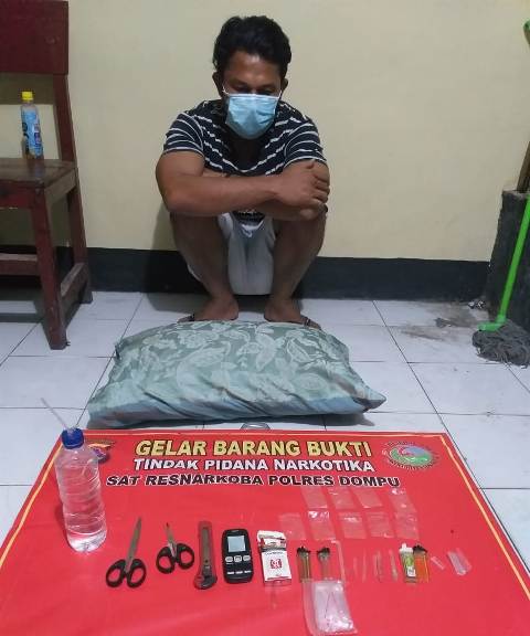 DOMPU – Peredaran Narkoba jenis sabu-sabu ternyata sudah sampai di pelosok – pelosok Desa di Kabupaten Dompu. Sudah banyak penangkapan yang dilakukan oleh tim Satuan Narkoba Polres Dompu selama ini, yang pelakunya rata-rata dari desa di berbagai kecamatan di luar Kota Dompu. Hari ini pun telah ditangkap seseorang berinisial RA 33 tahun juga warga dari pelosok yakni Desa Jala Kecamatan Hu’U.