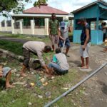 Bhabinkamtibmas Bantu Warga Perbaik Pipa Yang Rusak
