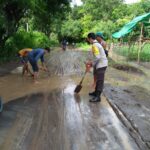 Dompu– Mencegah terjadinya kecelakaan karena kondisi jalan yang becek dan licin, Bhabinkamtibmas dan Warga Desa Riwo melakukan gotong royong pembersihan jalan yang